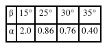 여기서 α는 입사각 β에 따라 결정되는 직선의 기울기로 Table 4에 주어진 바와 같다.