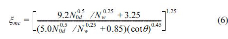 Suh and Kang(2012a)은 Van der Meer(1988)와 유사하게 마루높이가 높고 보통의 피복재 거치밀도에서 실험하였으며, De Jong(1996)이 제안한 두 효과를 차용하여 사용하였다. 여기서 ξm ( = tanθ /