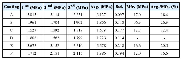 (5) Bond strength values were recorded and the failure pattern observed, for each coating.
