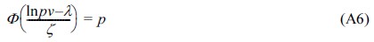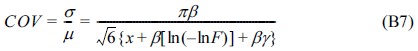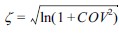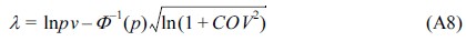 이 된다. 따라서, 식 (A5)와 (A8)을 이용하여 ζ, λ를 산정한 후, 식 (A2)를 이용하여 μX를 산정하고, COV값을 이용하여 표준편차를 산정한다.